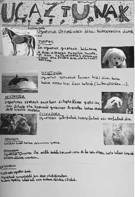 Hiruhileko honetan animalien ezaugarriak aztertu ditugu eta nola sailkatzen diren ikasi dugu. Taldeka egindako lana gure gelakideei aurkeztu diegu hormirudi politak eginez. Hona hemen egindako lan batzuk.