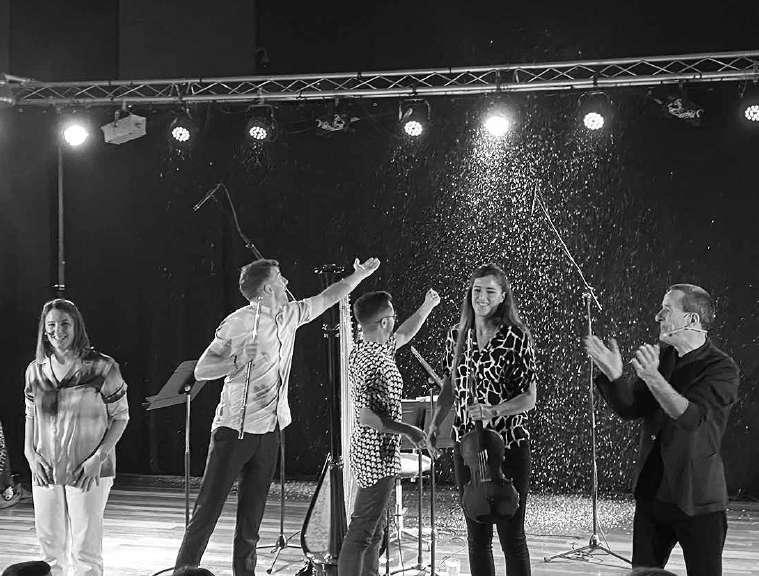 eskaintzera eta gauzak irakastera. Baita Neomak taldeko hiru kide ere. Izugarrizko giroa sortu da gure gelatan. Jarrai dezagun musikaz gozatzen!