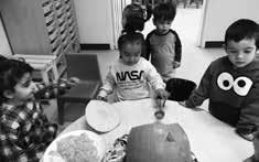 Lehenik eta behin, umeei koilarak eman eta pixkanaka- pixkanaka kalabaza osoa hustu zuten.