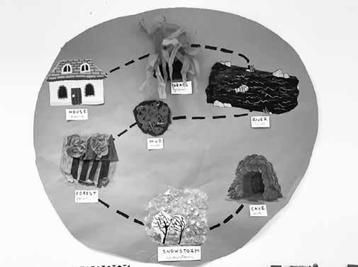 Gu geu ere ibilbide hori imitatzen saiatu gara. Batetik, discovery bottles batzutean, ipuinean agertzen diren eskenatoki desberdinak adierazi eta erabili ditugu esku artean: long wavy grass, deep cold river, thick oozy mud, big dark forest, swirling whirling snowstorm eta narrow gloomy cave Bestetik, norberak bere mapa egin du. Ez dugu bidean galdu nahi!