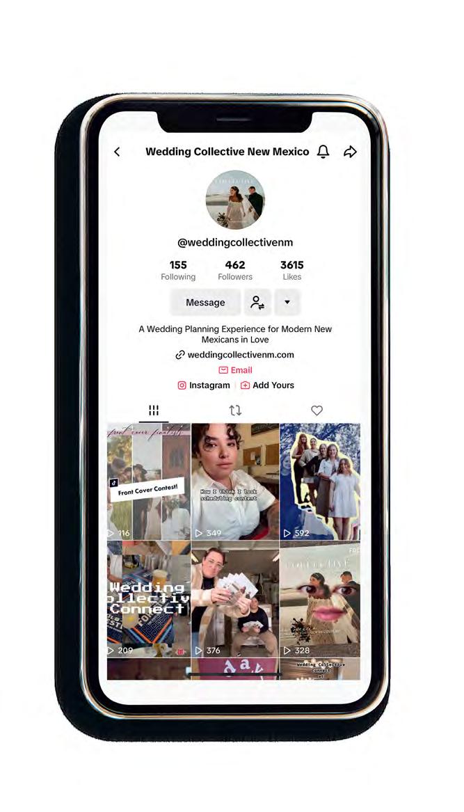 Wedding Collective New Mexico is published two times per year by Wedding Collective LLC. All rights reserved. No part of this publication may be reproduced without the express written consent of the publisher. Wedding Collective is a registered trademark of Wedding Collective™. The use of the trademark is strictly prohibited. The information contained in this publication is believed to be accurate. However, Wedding Collective New Mexico does not guarantee its accuracy. Wedding Collective New Mexico cannot and will not be held liable for the quality or performance of goods and services provided by the advertisers in this publication.