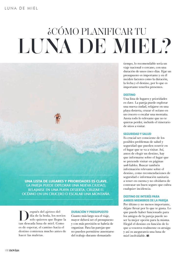 Siéntete inspirado por las nuevas tendencias nupciales, vive los mayores desfiles de novias del mundo y las series que nos trasladan a la época de las reinas. Las secciones de novio e invitada te permitirán descubrir los mejores looks para vestir y no te pierdas, sobre todo, nuestras sugerencias para tu luna de miel.
