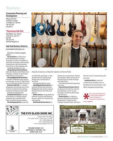 Danche Ivanovic at Danche Guitars in Forest Park. at Oak Park and Lake, is the destination for dining and shops and a multitude of services. hemingwaydistrict.com Lake/Ridgeland/Austin District is located along Lake between Ridgeland and Austin and on South between Scoville and Austin. Madison District, along Madison between Austin and Harlem, forms a spine of commercial enterprises. North/Austin/Harlem District on