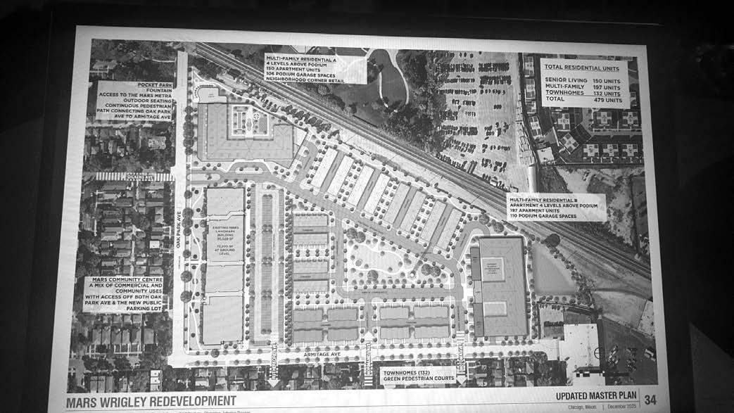 The Mars plant at 2019 N. Oak Park Ave., opened in 1929. In 2022, the confectionary giant announced that it would close the factory by the end of 2024. It contracted Local Initiatives Support Corp. Chicago to come up with a community-driven plan for the property’s future. During several in-person and virtual community meetings, residents developed a plan, which was released in 2023.