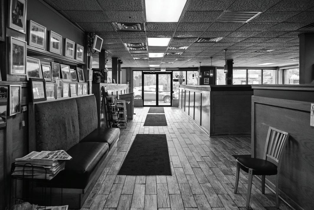MACA R THUR’S LOBB Y, CHIC AG O ’S WESTSIDE, 2024: is photograph was made inside the lobby of MacArthur’s Restaurant, a place deeply tied to my ow n memories of the Westside.