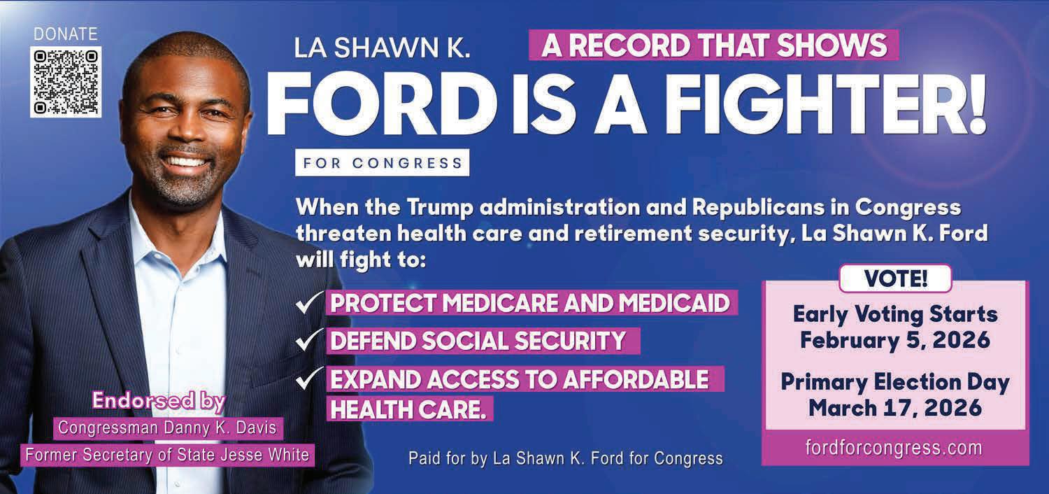 Democrat Kina Collins was unable to attend the forum due to a previous engagement with voters, but submitted a comment: “My campaign is rooted in advancing equity and opportunity on the West Side, fighting for quality public schools, accessible and af fordable healthcare, economic investment that creates good paying union jobs, and real public safety solutions that center dignity and justice.”