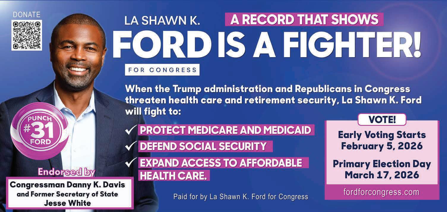Editor’s note: Ahead of the March 17 primary, Growing Community Media is profiling the candidates running in the 7th congressional district in Illinois. Whoever wins the November election will succeed Rep. Danny Davis, who is retiring after nearly 30 years in the position. This week, GCM reported on Melissa Conyears-Ervin.