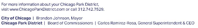 For more information about your Chicago Park District, visit www.ChicagoParkDistrict.com or call 312.742.7529.