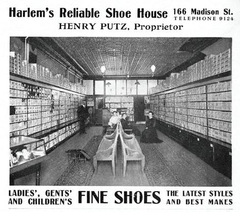 Their first shoe store was on Desplaines and moved to Madison in 1904. The 50th Anniversary of Harlem souvenir book reported that the store had the largest stock and assortment of boots and shoes to be found anywhere outside Chicago. Anna Putz was reportedly very amiable, sociable and businesslike and assisted her husband in the sales department as well as raising their two children, Elfriede and Ethel. Women played a vital role in retail stores, taver ns and small shops during the early days of Madison Street and were recognized to some degree for their contributions in the early days of Harlem.