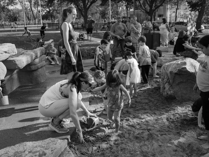 Reiger Park now boasts a water feature, gaga ball pit, sand area, a shelter with restrooms and tables with checkerboards. A small soccer field sits at the park’s south end, against 16th Street, and the playground has all new equipment, catered to those with physical and mental disabilities.