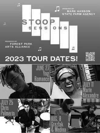 Tuesday, July 11, 7-8 p.m., Alexandre is a jazz vocalist who has been honing her craft for a good 20 years now. This outdoor show takes place on a literal front porch and is a good location to experience her sound intimately. Feel free to bring chairs and blankets. In the event of rain, there will be a show the following Thursday. Sponsored by the Mark Hanson State Farm Agenc y. For more information, visit www. forestparkarts.org. 1041 Thomas Ave., Forest Park.