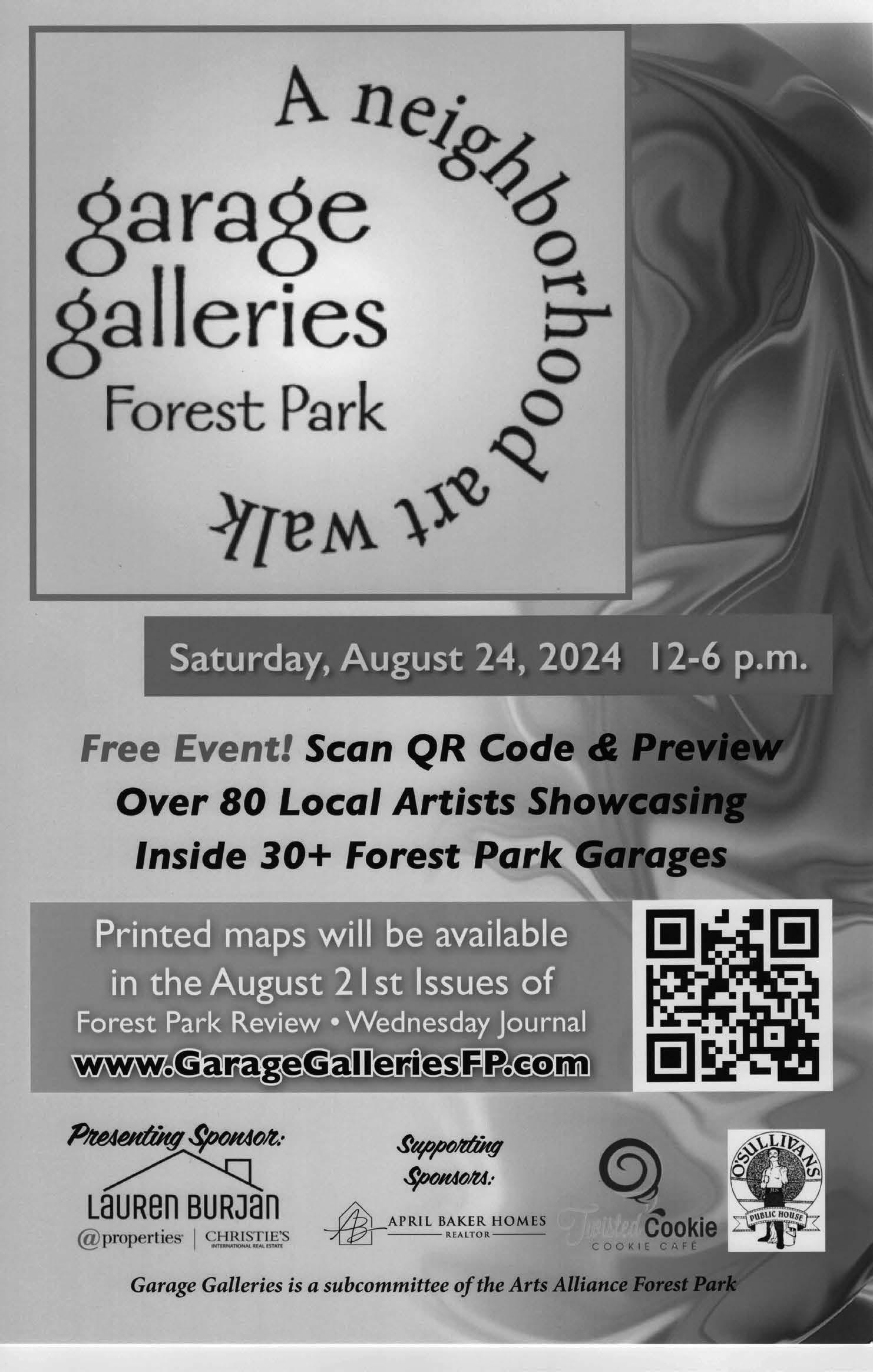 Garage Galleries Forest Park is a volunteerdriven neighborhood art walk. Forest Park residents open their garages to local area artists. The event celebrates art and artists in a casual, family-friendly neighborhood setting and encourages residents and visitors to explore Forest Park.