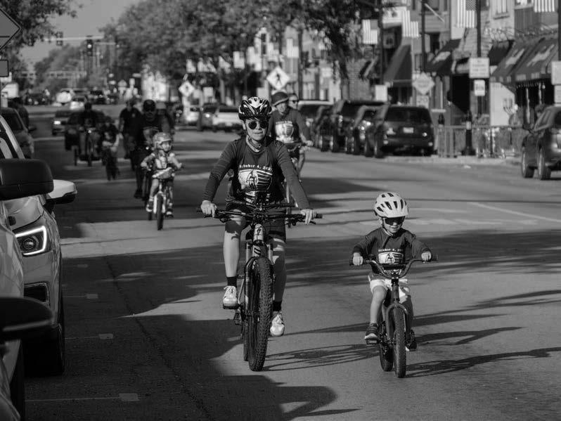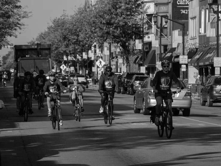 Cyclists r ide east on Madison Street, completing the Tour de Prov iso. More photos on page 4.
