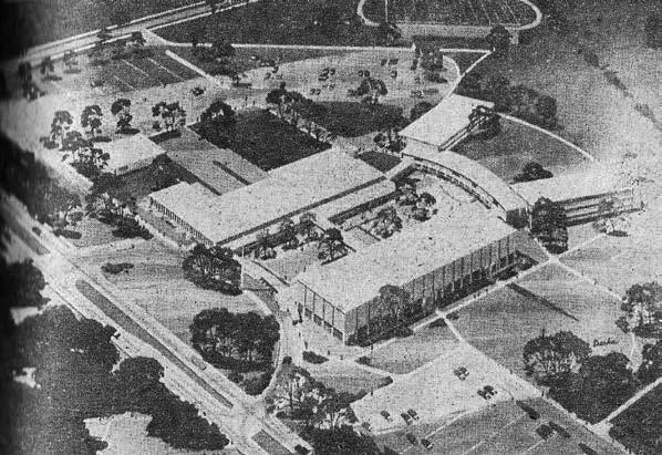 Panoramic view of Proviso West High School in Hillside, as proposed by Perkins & Will architects, approved by the Proviso 209 Board of Education, featured in the Oct. 18, 1956 Forest Park Review.