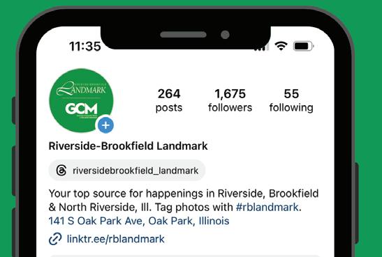 The Landmark is published digitally and in print by Growing Community Media NFP. The newspaper is available on newsstands for $1.00. A one-year subscription costs $57 within Cook County and $95 outside the county. Adver tising rates may be obtained by calling our o ce. Periodical rate postage paid at Oak Park, IL (USPS 0019-585).
