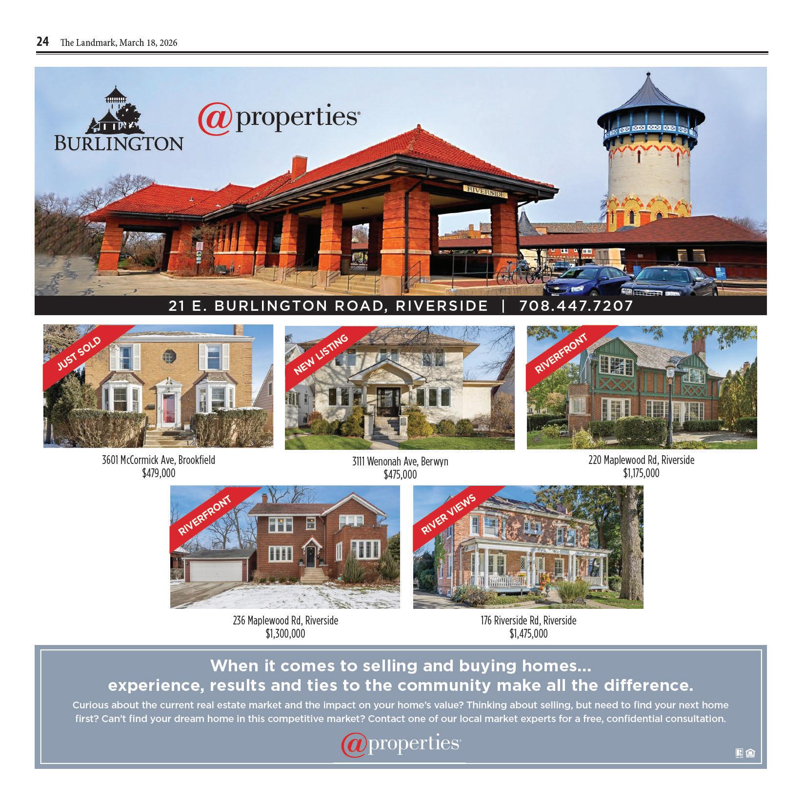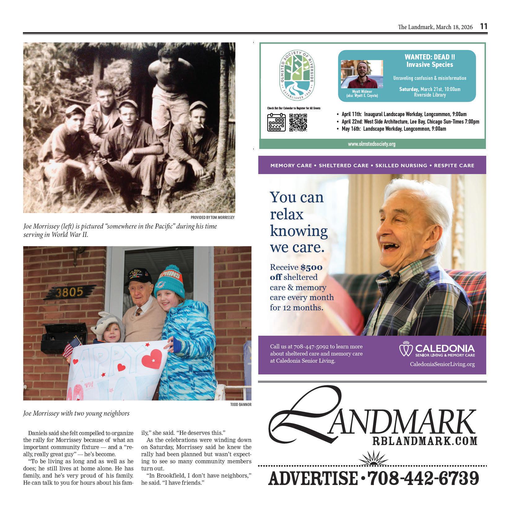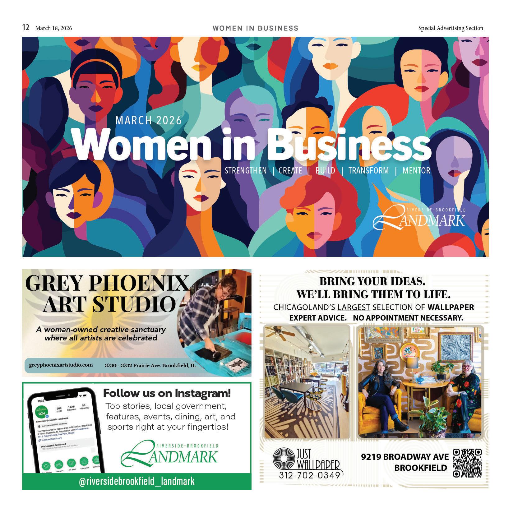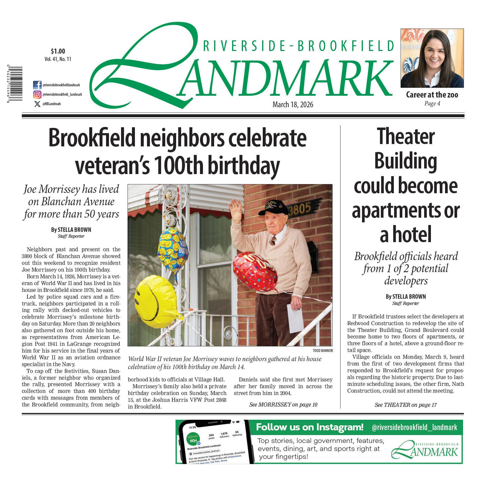 The Landmark is published digitally and in print by NEWSWELL. The newspaper is available on newsstands for $1.00. A one-year subscription costs $57 within Cook County and $95 outside the county. Adver tising rates may be obtained by calling our o ce. Periodical rate postage paid at Oak Park, IL (USPS 0019-585). Postmaster send address corrections to Landmark, PO Box 6670, River Forest, IL 60305. © 2026 NEWSWELL