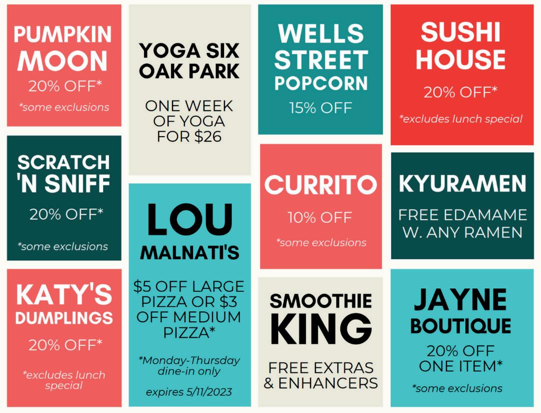 Get your FREE ticket to specials at participating Downtown Oak Park businesses.