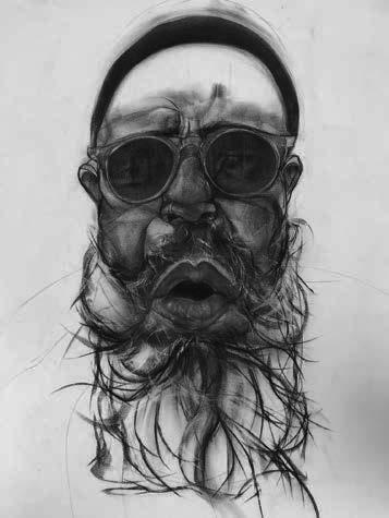 Jesse Howard, “ e Soul of Urban Life,” charcoal and ac rylic paint on paper, 37x29 inches)
