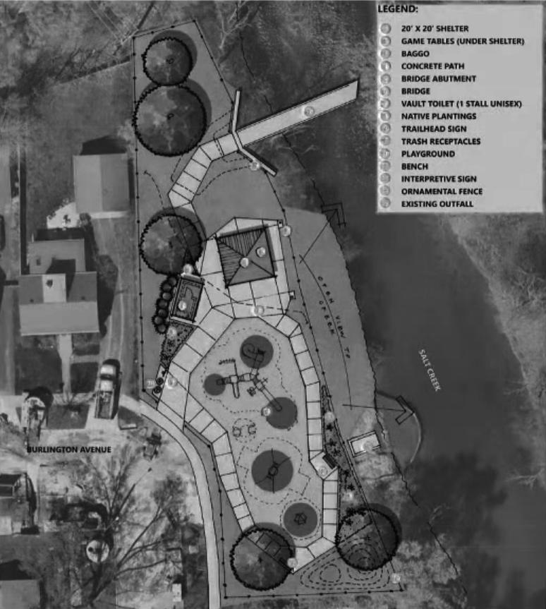 sides of Salt Creek,” Gundersen said. “We needed to include the bridge with the identified Creekside Park as the trailhead for that new amenity, [the] open-space area that we’ve been identifying as South Kiwanis Park.”