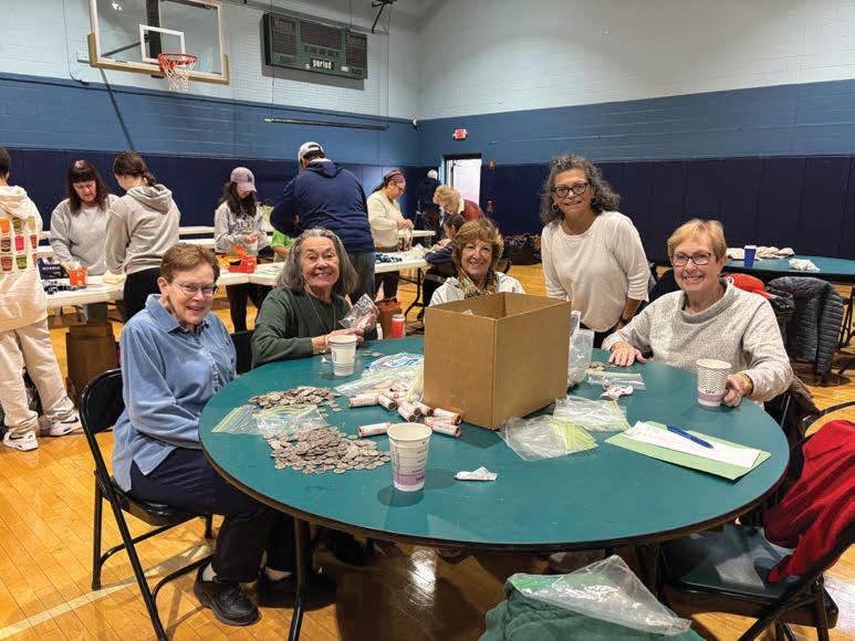 From le , Nancy Maracich, Jean DiMonte, Janet Meyers, Pat Cuevas and Marie Sloan worked to separate donated quarters into baggies of $3.50 each to pay for laundry.