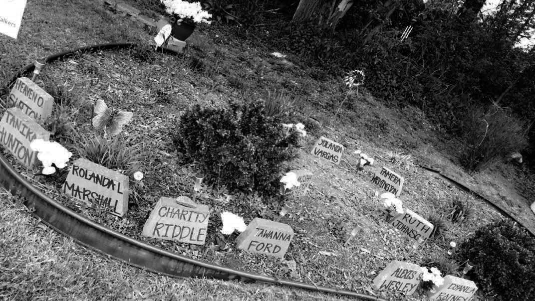 After the installation ceremony, community residents were invited to march to bring awareness to the murders of women in Proviso. The rain did not stop attendees from marching from the Memorial Garden to the Maywood Peace Garden, located on 17th St. and Madison. Several families, including Duncan’s daughters and grandchildren joined.