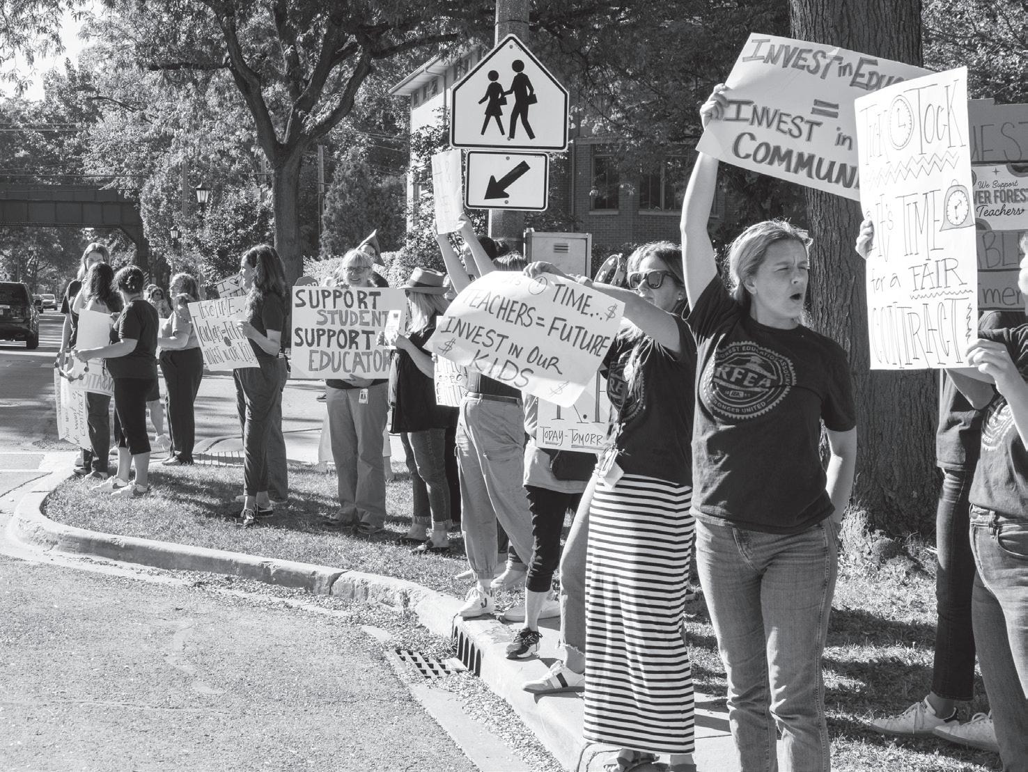 River Forest teachers and their suppor ters picket along Lake St reet outside the District 90 o ce on Sept. 30, 2025.