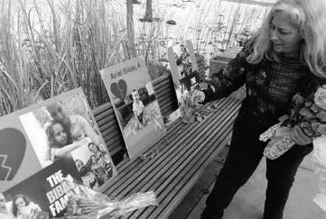 Amy Drescher-Crumpley of Glen Ellyn, a member of Oak Park Temple, lays owers next to pictures of the Bibas family. Approximately 30 people attended.