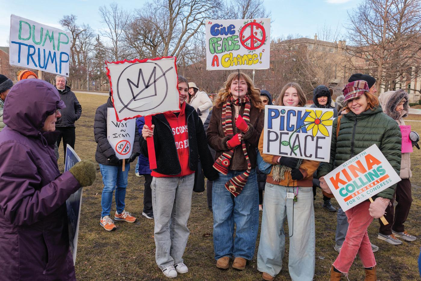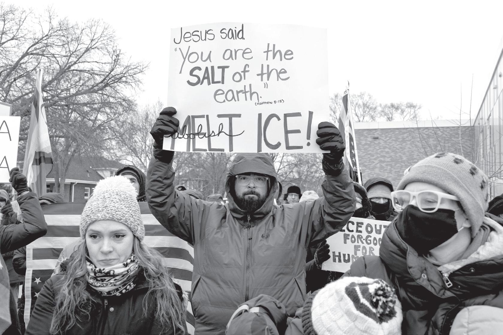 Oak Park Village Trustee Brian Straw holds sign at protest of ICE killings in Minneapolis at Lincoln School on Jan. 24.