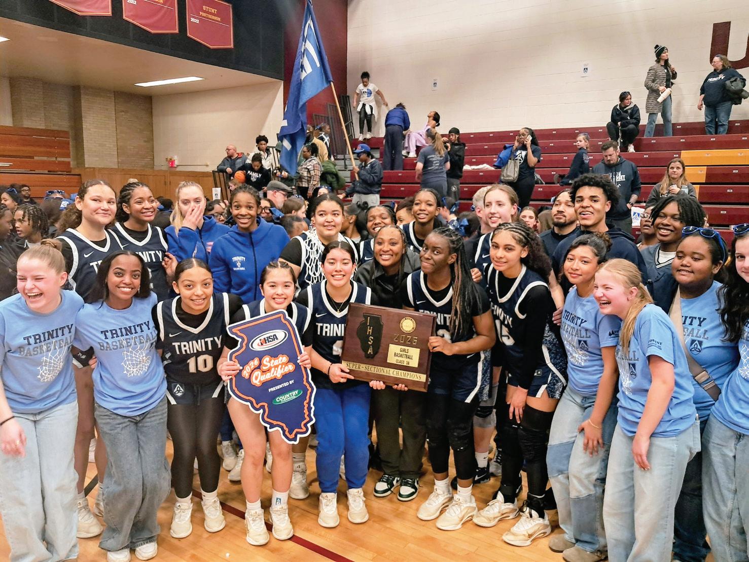 e Trinity High School basketball team punched its ticket to the IHSA Class 3A state semi nals with a 50-36 v ictor y over Glenbard South at the Concordia University Supersectional in River Forest, March 2.