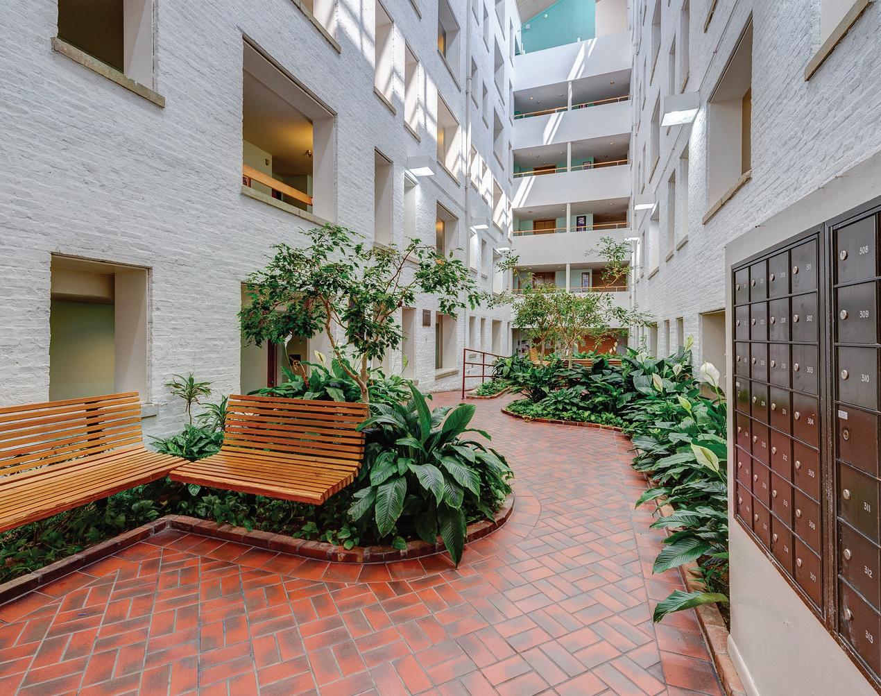 Our beautiful 6-story building provides quality, a ordable, independent housing for seniors. We o er 75 studio and onebedroom apartments. Amenities include an award winning interior landscaped atrium, central meeting room, library, laundry facilities, computer learning center, internet access, electronic key entry system, parking, onsite management, and 24/7 emergency maintenance service. e Oaks is funded by the Department of Housing and Urban Development through HUD’s Multifamily Housing Program. Monthly rent is based on the resident’s income, with individuals paying approximately 30% of their monthly income toward rent.