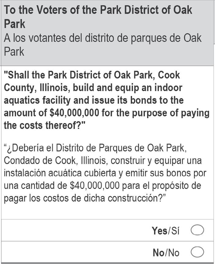The wording of the March 17 referendum fails to mention that the proposed 25-yard pool will replace a demolished 50-meter Ridgeland outdoor pool. Board members have stated variously that that wording came from either their bond counsel and/or the Cook County Board of Elections. I am curious as to what details were provided by the board to either of those entities when said language was discussed.