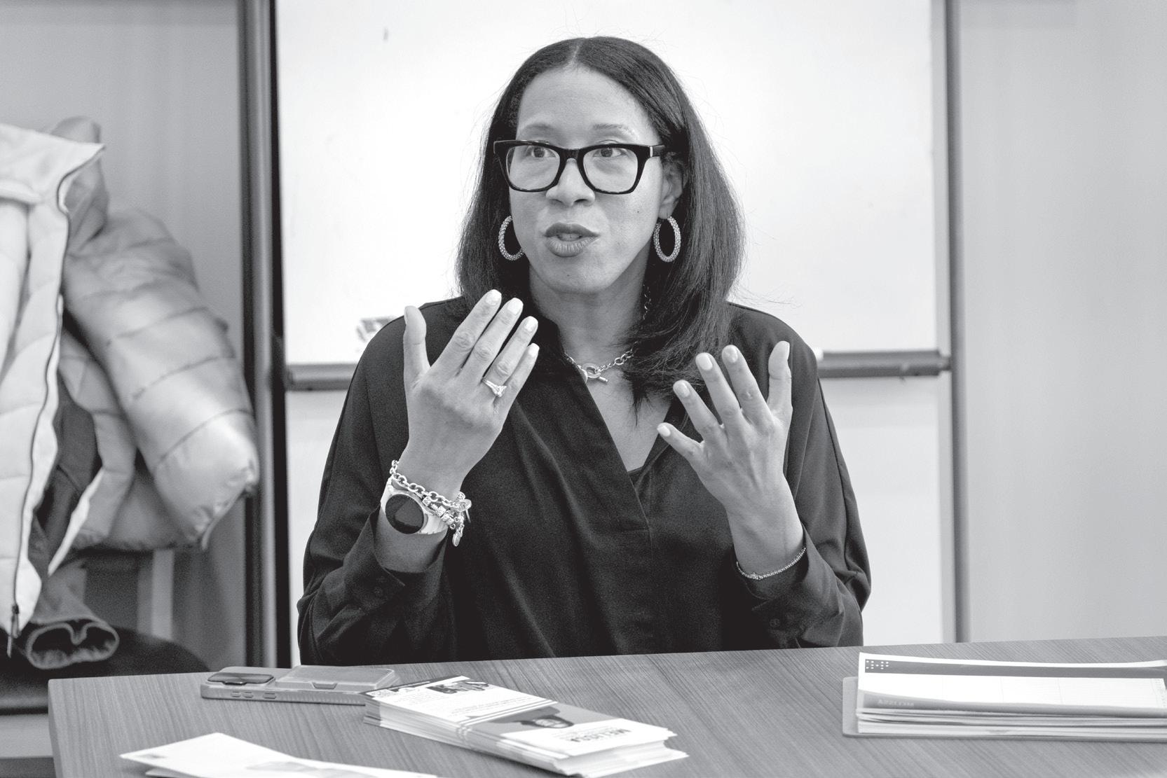 7th District Congressional candidate Melissa Conyears-Erv in speaks to voters at the Oak Park Public Library on Feb. 7.