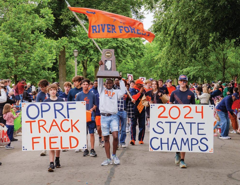 e 2024 State Champion OPRF High School Track & Field team celebrated by ma rching in the River Forest Memorial Day Parade May 27. See photos from Memorial Day observances on page 14. See state championship ar ticle in Sports, page 37. See AMERICAN LEGION on pa ge 6