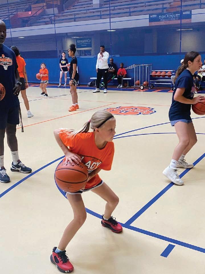 A camper practices a drill at the rst Junior Huskies Basketball Feeder program clinic held July 24 at Oak Park-River Forest High School. e program, open to boys and girls from grades 3 through 8, starts its fall league August 17.