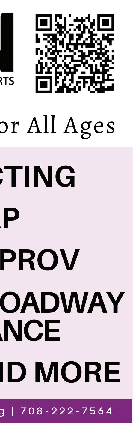 Equity in the arts is the driving force behind Maywood Fine Arts’ programs and people. Access to affordable, high-quality instruction in dance, music, visual arts, drama, tumbling and fitness cannot be taken for granted among families MFA serves from nearby, under-resourced communities such as Maywood, Bellwood, and Chicago’s Austin neighborhood. MFA serves over 800 students ages 4 to 18 per week, the majority of whom are young people of color. MFA’s facilities anchor downtown Maywood. Families count on MFA’s safe, nurturing out-of-school time environment where children learn artistic and social skills and expand their worldviews.