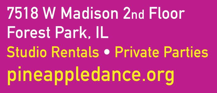 Now in Oak Park–Summer Solved with Steve & Kate’s Camp! SUMMER SOLVED! A Family friendly, safe and secure environment • Infants & Toddlers (6 weeks - 3 years) • Pre-K (3 - 5 years) • After School Care (5-12 years) Shaping Children into Independent, Successful Learners • Certified, experienced staff • Researched-based, Developmentally Appropriate Curriculum • Open Year Round • Half Day Slots Available • Licensed by the State of Illinois & Village of Oak Park • Serving the Community for over 25 years & counting For more information, call 708-848-0701 411 South Blvd., Oak Park, IL www.abctooontown.com PINEAPPLE DANCE STUDIO