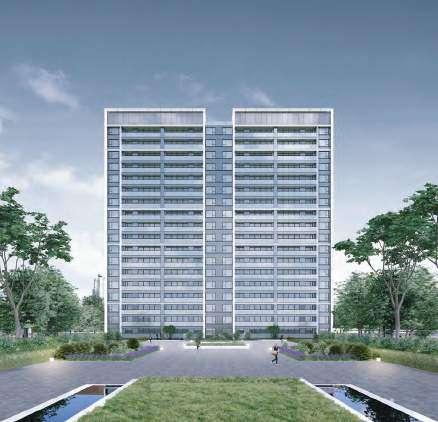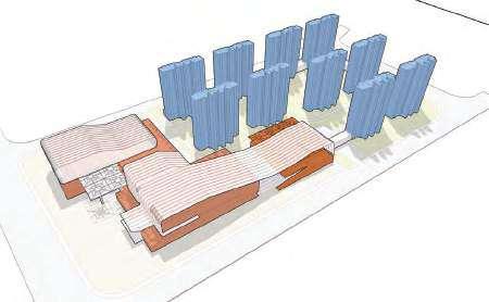 One axis: A naturally formed building space axis, represented by twin towers along the urban interface on the south side of the land.