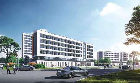 Considering the traffic direction from the northeast side of the main urban area, the campus image is designed to unfold along the northwest side of the road.