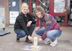 Sybiella Dijcks (links) en Anja Stienen legden samen de Zwaaisteen. Foto: Nederweert24