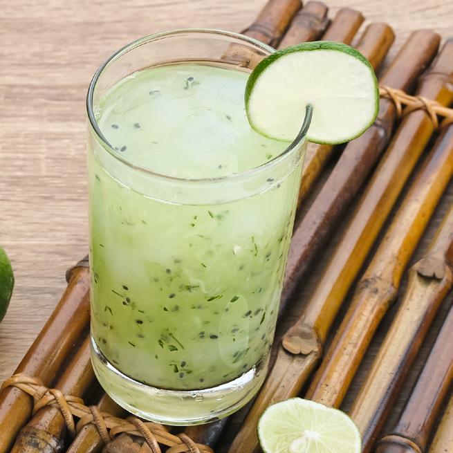 Se elabora con el jugo de 2 limones, una cucharadita de jengibre fresco rallado, una cucharada de miel o azúcar, agua fría, hielo y hojas de hierbabuena.