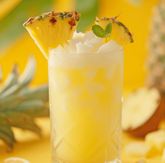 Su preparación consiste en licuar la piña con la leche de coco, el jugo de limón y hielo hasta obtener una mezcla suave. Para una textura más ligera puedes agregar un poco de agua natural o de coco. Sirve bien frío y decora con una rodaja de piña o coco rallado.