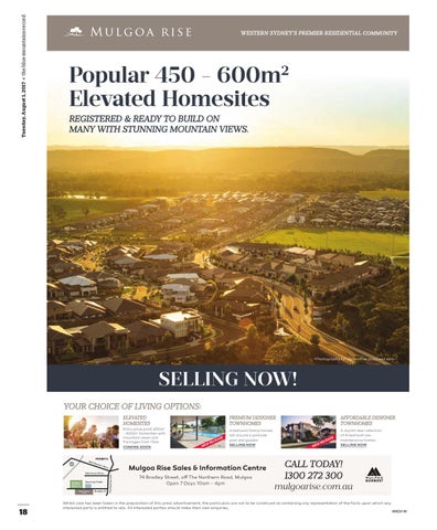 Mulgoa Rise Sales & Information Centre 74 Bradley Street, off The Northern Road, Mulgoa Open 7 Days 10am - 4pm