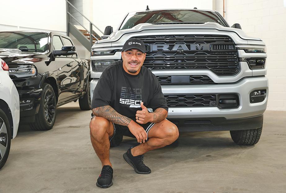 Spotted: Premiership-winning Panthers forward Moses Leota at Daniel’s Auto Group, helping promote their RAM range.