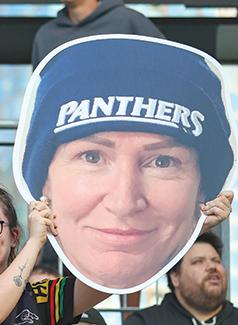 Special tribute: Well done to the family and friends of Panthers fan Leanne McMeniman, who sadly passed away aged 47 on February 21 following a medical episode. Leanne was an absolute Panthers tragic, so her support crew turned up at the Panthers v Eels game last month with cardboard cut-outs featuring her face. Our thoughts are with Leanne’s partner Steven Fitzgibbon and her children. We’re sure Leanne is still telling the ref to get ‘em on side.