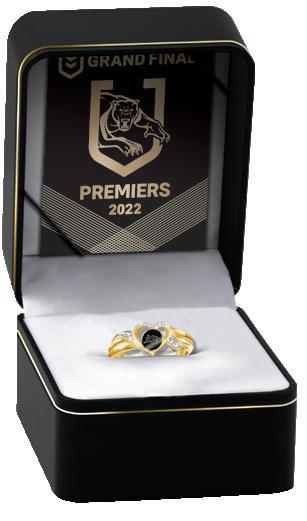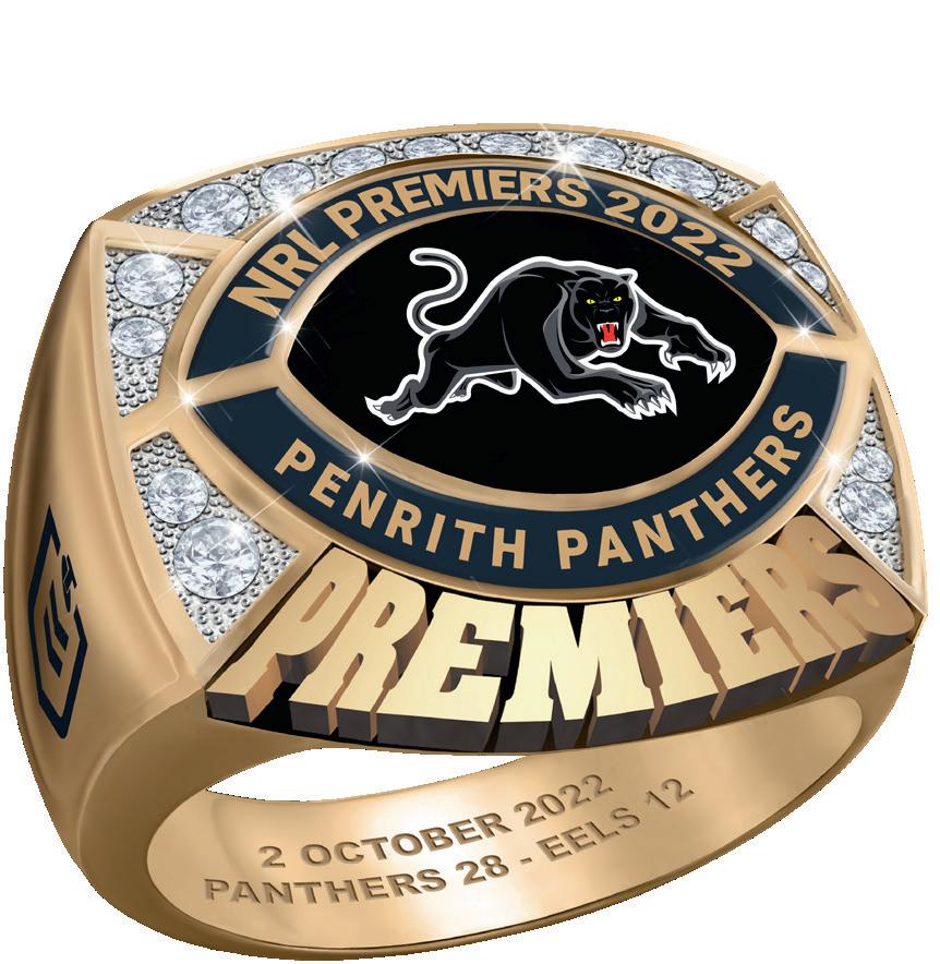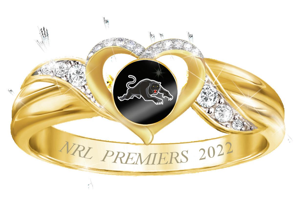 whom will make their Kangaroos debut at the tournament. Dylan Edwards has been named as a standby player. Nathan Cleary celebrates in the dressing room. Photo: NRL Images.Penrith Panthers’ 2022 Telstra NRL Premiership victory with these official licensed Premiership rings, available only from The Bradford Exchange. The men’s ring captures the power of the Penrith Panthers in gleaming 18K gold plate. The official team logo is magnificently recreated in rich, full colour, surrounded by the proud title “NRL Premiers 2022”. The sculpted word “PREMIERS” powers up in full dimensional glory. The iconic NRL emblem accents each side of the ring, while the date and score of the Grand Final are masterfully engraved on the inner band. The elegant twin-band design of the women’s ring shimmers in 18K gold plate and features an open heart, which frames the team logo in brilliant team-colours. The top of the heart is accented with glittering crystals for a look of pure, sparkling elegance. Two pavé-set ribbons of crystals wrap around the ring’s band, while the uplifting statement “NRL PREMIERS 2022” is expertly engraved inside the band.