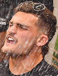 ! Panthers party hard: Nobody can deny that the Panthers know how to party. The celebrations in the dressing room after the game were absolutely epic as the reality of what was achieved started to set in. The team didn't arrive back in Penrith until well after 1am, joining a private function at the EVAN Theatre. Viliame Kikau was clearly best on ground at the event. While a few hours' sleep was achieved by some on Monday morning, a chunk of the playing group was back on deck after the BlueBet Stadium fan day, heading to the Log Cabin and Duck Duck Goose on Monday, along with other venues, as the cele brations rolled on.