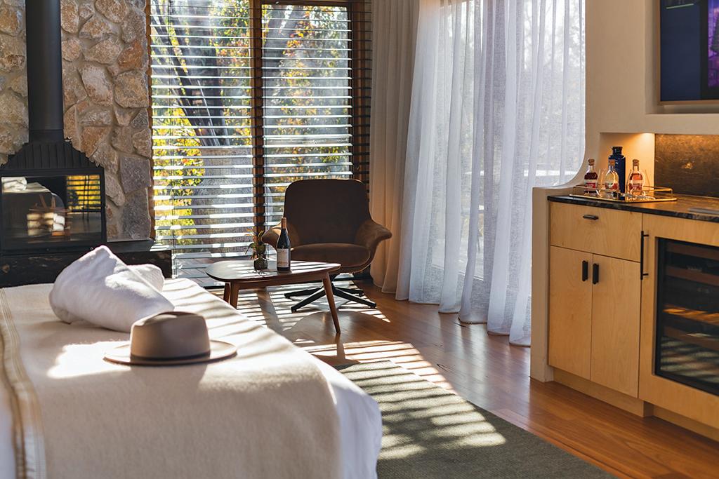 Modern and well-proportioned, the chalets are a celebration of luxury with an eco-sensitive edge. Floor-to-ceiling windows framing breathtaking bush views, oversized bathrooms, and twin rainfall showers that cascade UV-filtered mountain water. Light, bright and spacious, it’s the perfect setting for a cosy couples retreat.