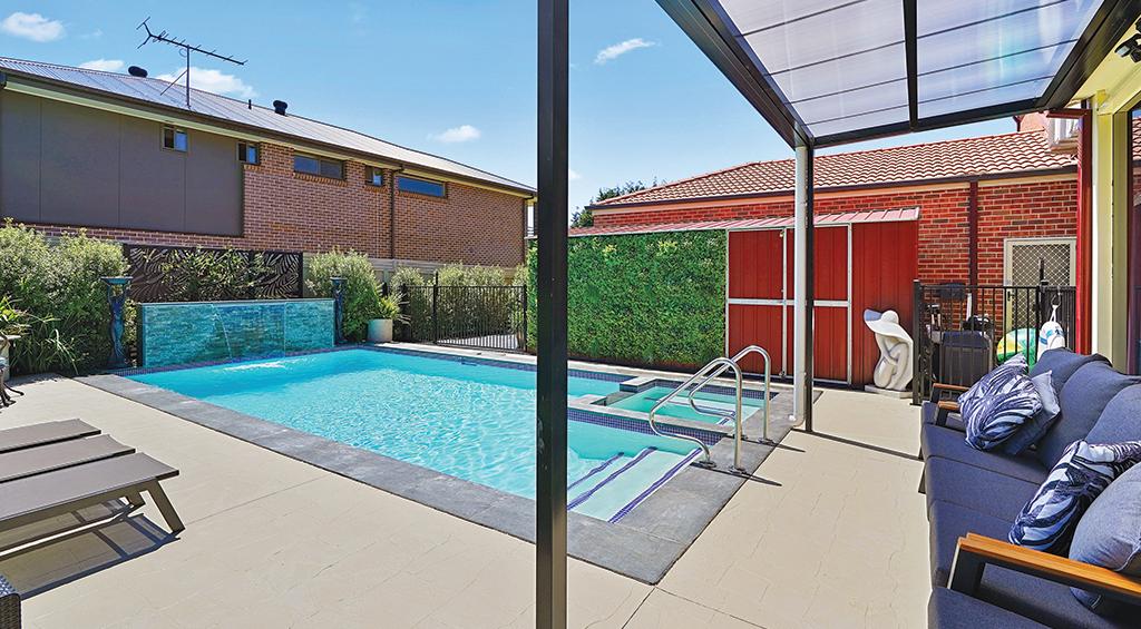 • Miele oven, gas cook top, rangehood, buil t-in microwave oven and dishwasher plus striking Parisi tapware, tinted mirror splashback and Caesarstone benchtop centrepiece