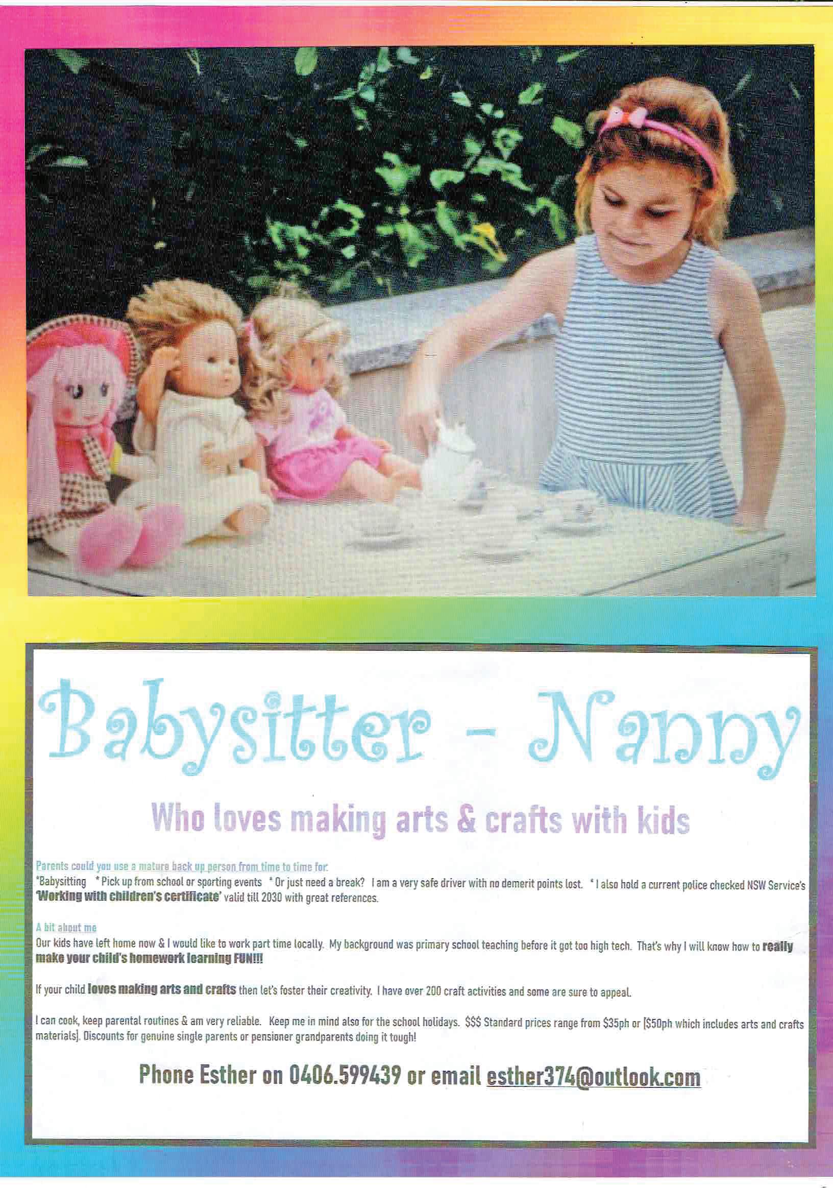 $$$ Standard prices range from $35ph or $50ph (including arts & crafts materials). Discounts for genuine single parents or pensioner grandparents doing it tough!