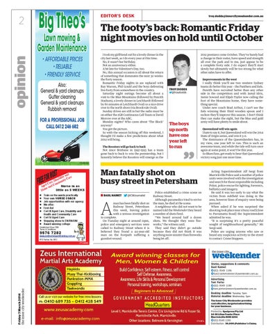 Stories, suggestions & comments: Basil Naimet (02) 9549 1196 basil.naimet@innercityweekender.com.au Advertising Toni Porter (02) 9549 1190 toni.porter@innercityweekender.com.au Booking deadline Tuesday 5pm Material deadline Wednesday 5pm The Inner City Weekender provides cost effective, targeted advertising for your business. Printed by: Spotpress Pty Ltd 24-26 Lilian Fowler Place Marrickville NSW 2204 177ICDFIL